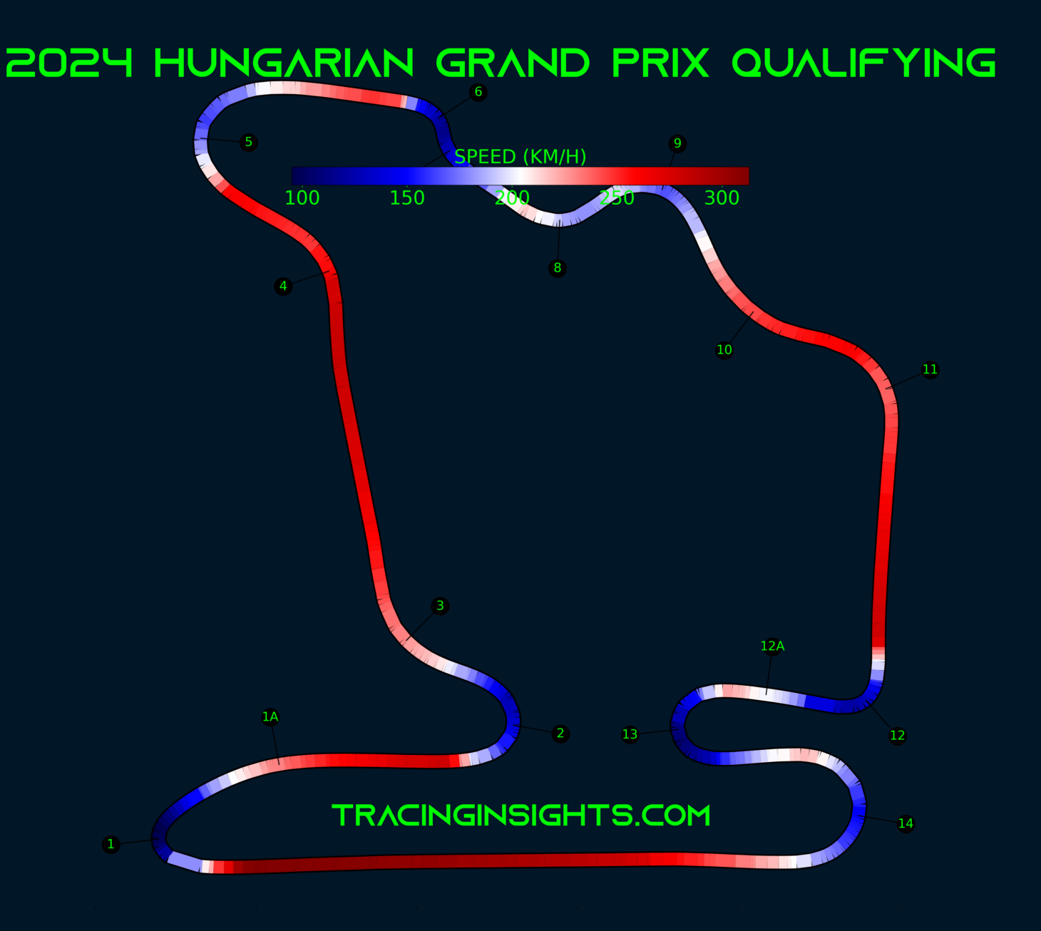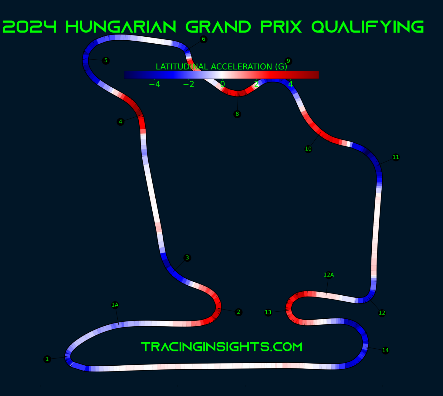 The 4.381-kilometer Hungaroring is a winding circuit, featuring 14 corners, six left and eight right. Many of these corners follow in quick succession, making a well-balanced car that can handle rapid directional changes vital for a competitive lap time. The layout includes various corner types, from those requiring heavy braking to low-speed turns. Turn 5, for example, is taken blind, with the contours creating a heightened sense of speed.