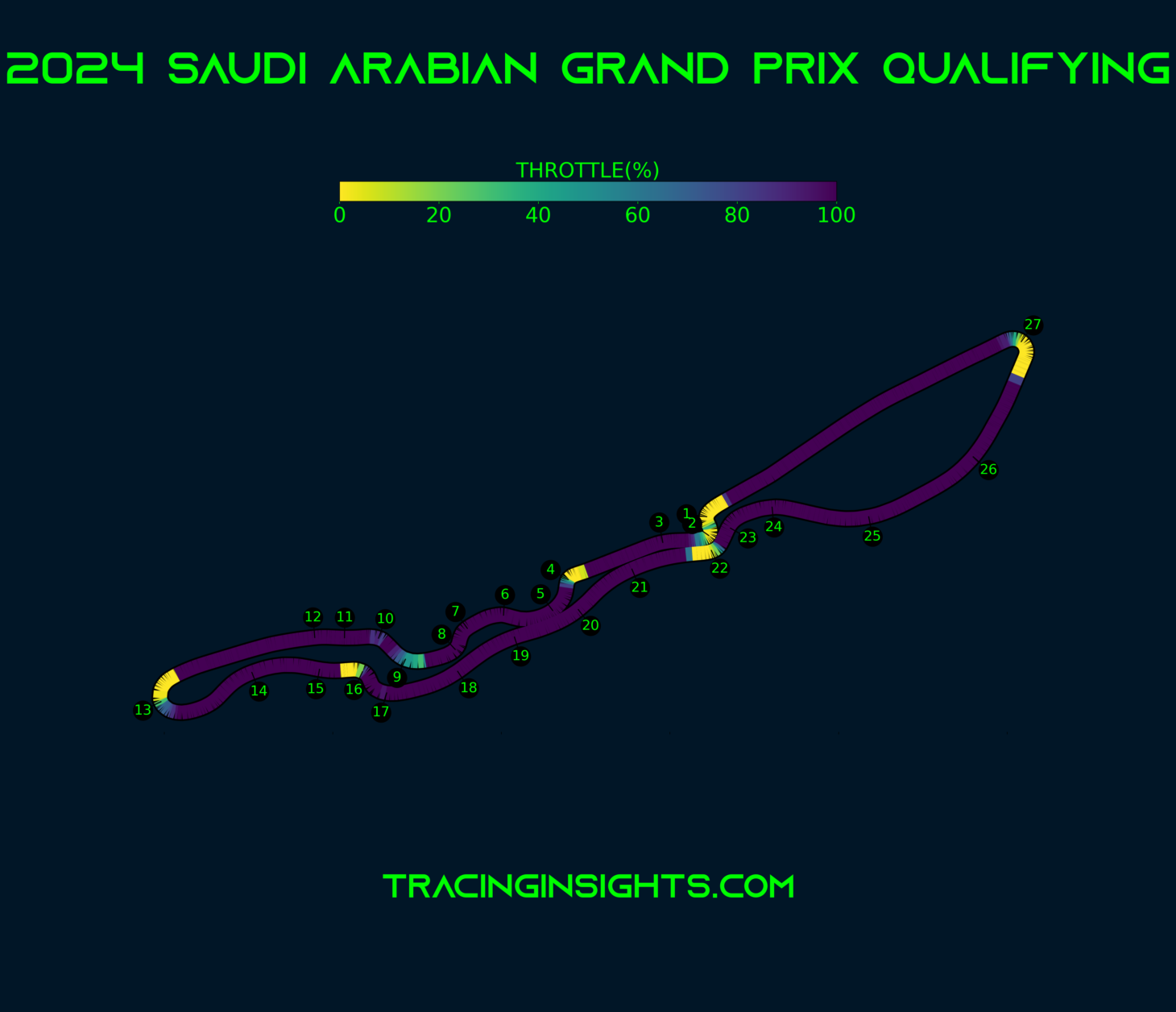 Anatomy of Speed: Dissecting Jeddah's 6.174km Ribbon – Featuring 27 Unique Corners, High-Speed Flow, Critical 12% Banking at T13, Minimal Braking Zones, and an 80% Full-Throttle Lap Profile